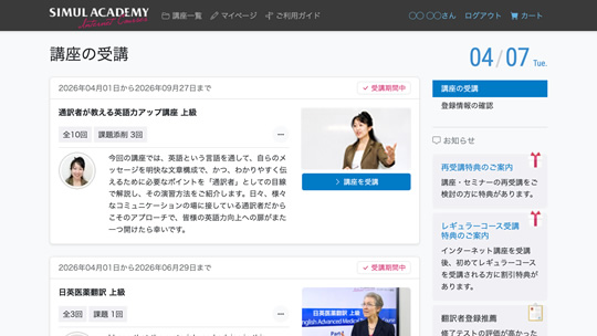 講座ラインナップは、サイマル・アカデミーならでは。スクールにおける信頼の品質をそのままに、インターネットでの学習に適した講座開発に取り組んでいます。