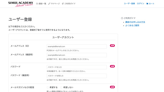 サイマル・アカデミー インターネット講座は、ユーザー限定のサービスです。講座へのお申し込み、受講には、無料のユーザー登録が必要です。